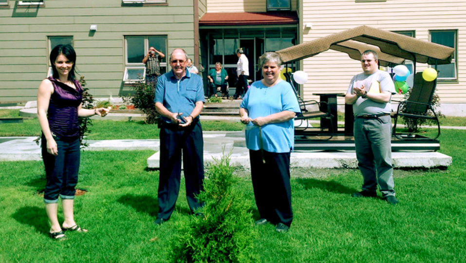 Madame Huguette Bergeron (Présidente du Comité consultatif des résidants), Madame Violaine Doyle (Mairesse de Port-Cartier), Madame Anna Saulnier (Présidente du Comité Entre-Nous), Monsieur Gilles Fournier (Président de l’Office municipal d’habitation) et Sabrina Savard (Directrice générale de l’Office municipal d’habitation de Port-Cartier).